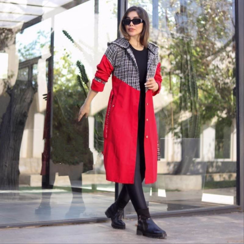 بارانی کتان زارا کلاهدار اسپرت بدون آبرفت رنگ قرمز