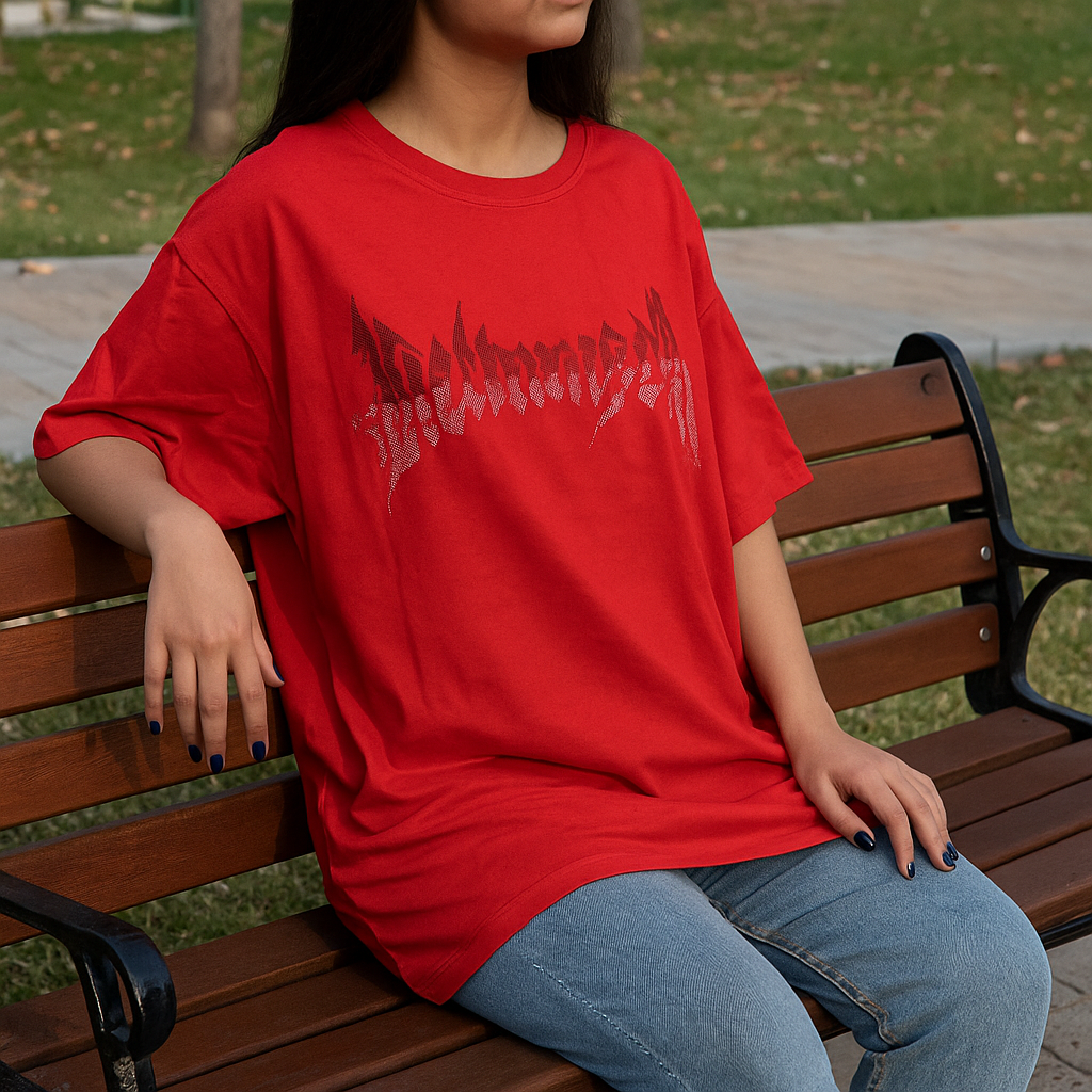 تیشرت نخ پنبه نگینی زنانه وارداتی رنگ قرمز کد 2