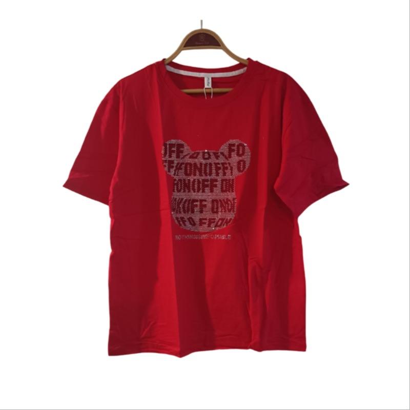 تیشرت نخ پنبه نگینی زنانه وارداتی رنگ قرمز کد 1