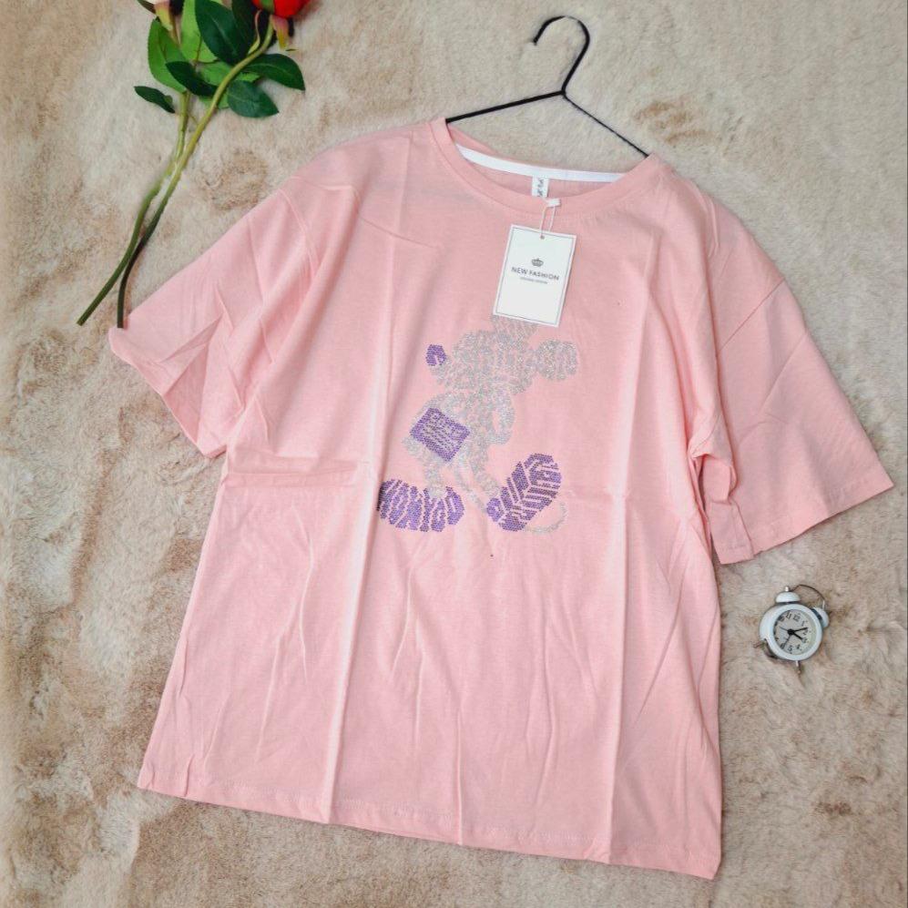 تیشرت نگینی زنانه وارداتی میکی موس سفید و صورتی فریسایز