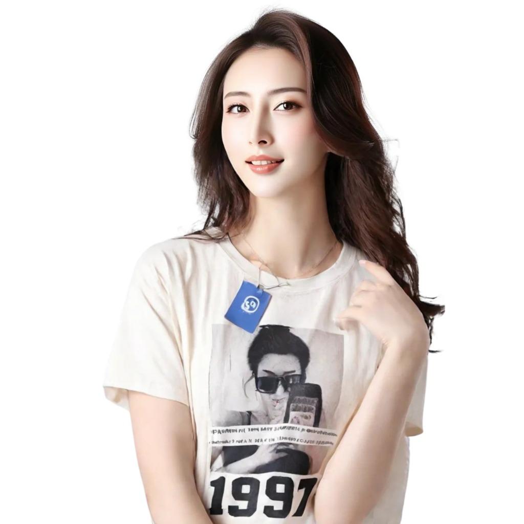 تیشرت پینترستی اسپرت زنانه مردانه نخی وارداتی چاپی رنگ کرم و آبی