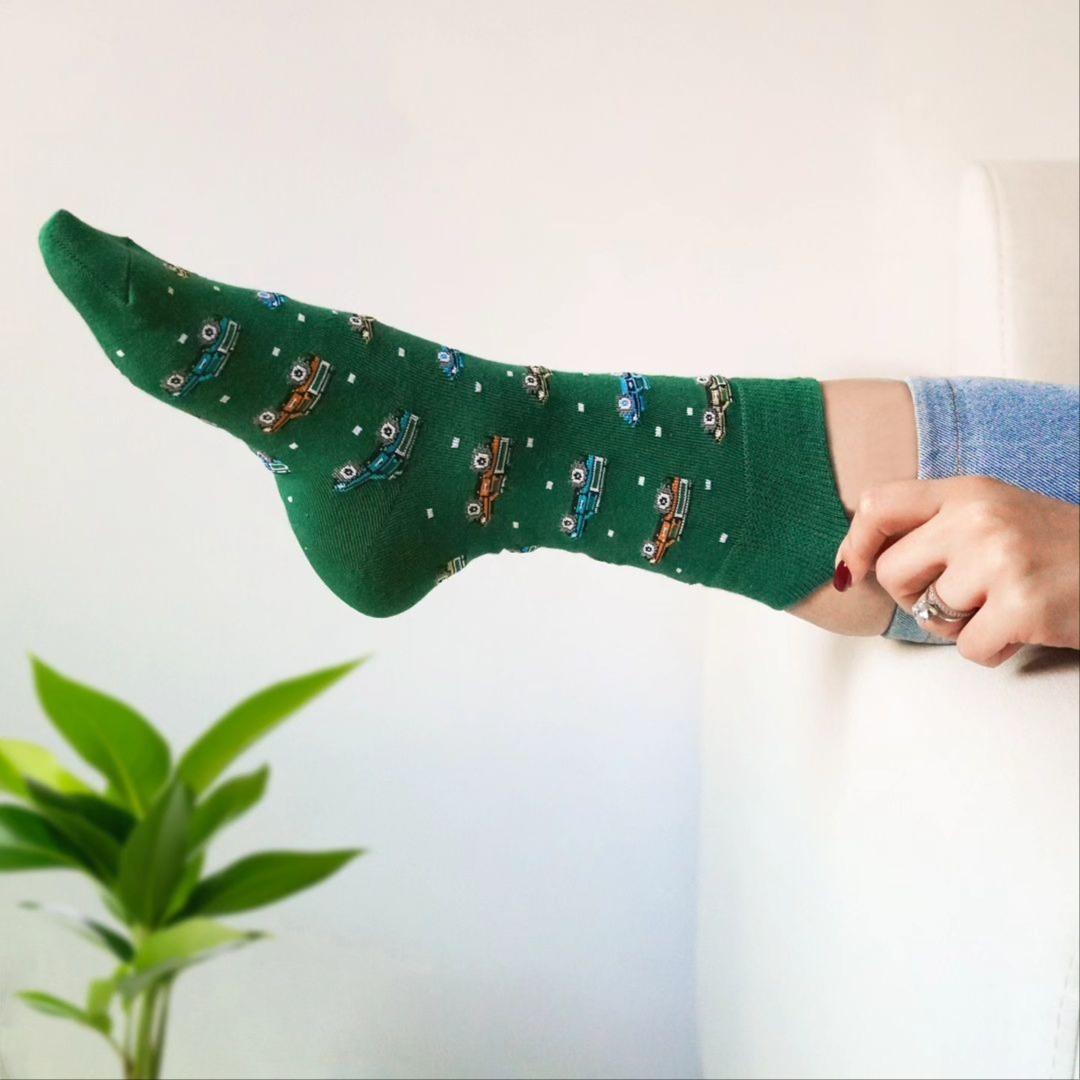 جوراب ساقدار نخ پنبه اسپرت ماشین سبز