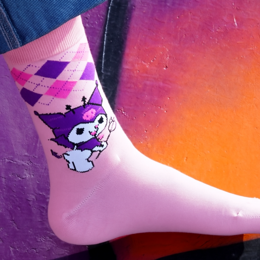 جوراب ساقدار نخ پنبه طرح کرومی صورتی