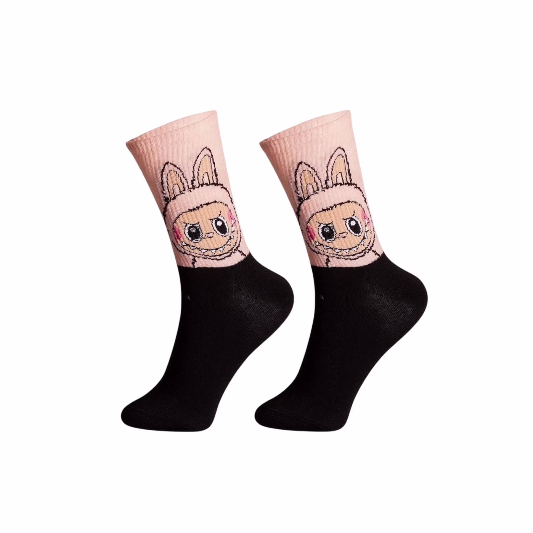 جوراب ساق بلند نخ پنبه لبوبو رنگ صورتی کمرنگ