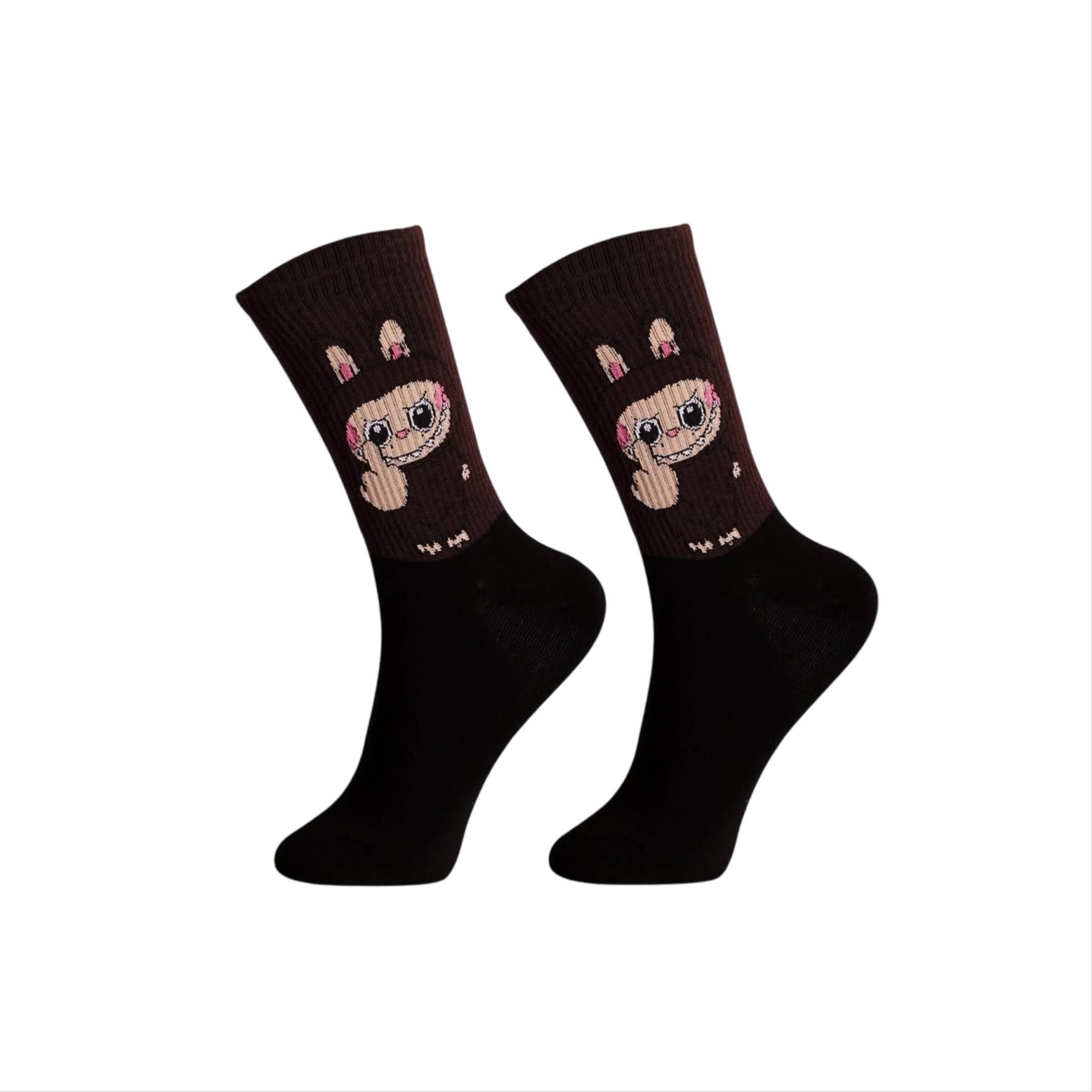 جوراب ساق بلند نخ پنبه لبوبو رنگ قهوه ای
