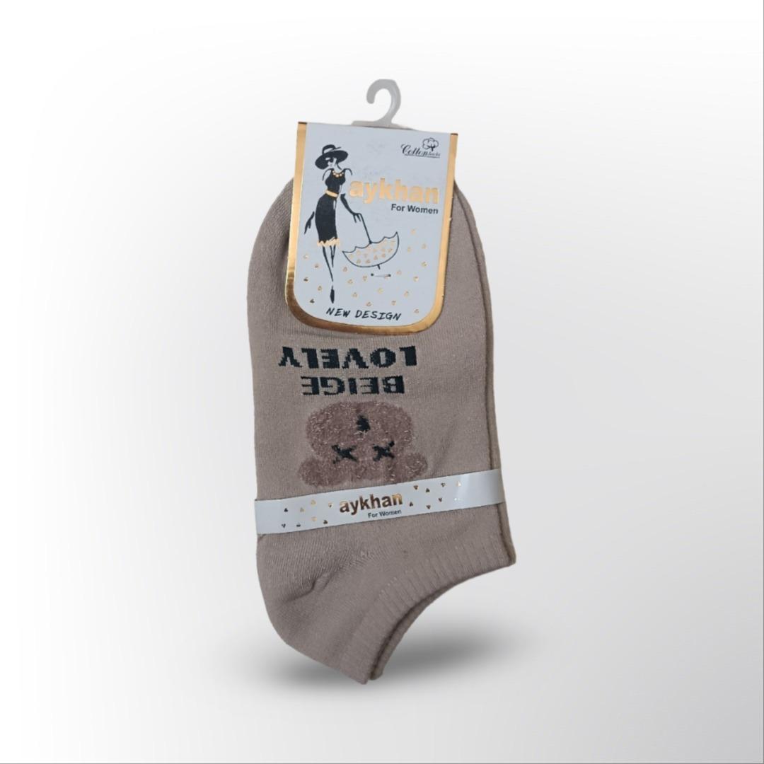 جوراب مچی زنانه طرح تدی بوکله دوزی رنگ نسکافه ای
