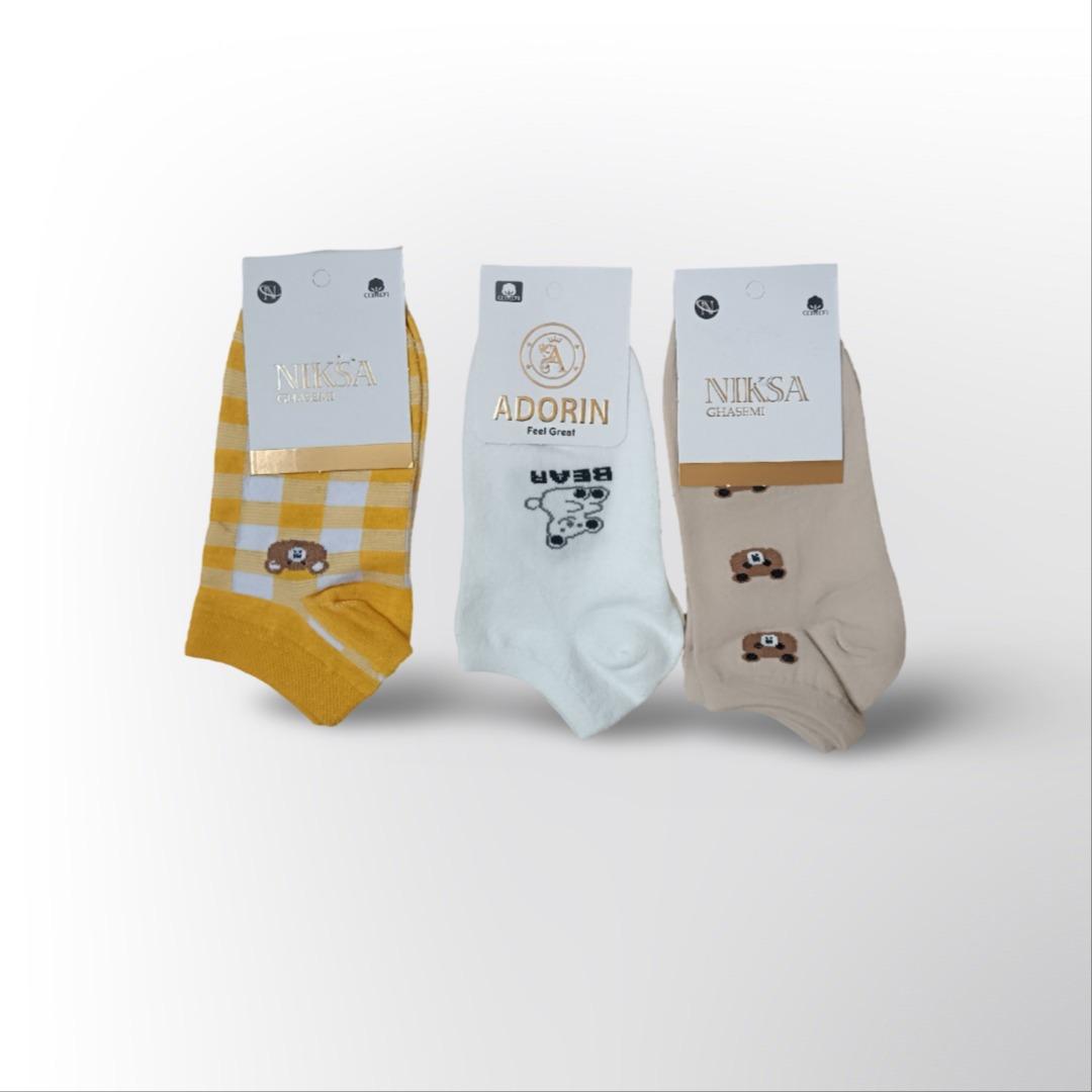 جوراب مچی زنانه طرح تدی رنگی بسته 3 عددی