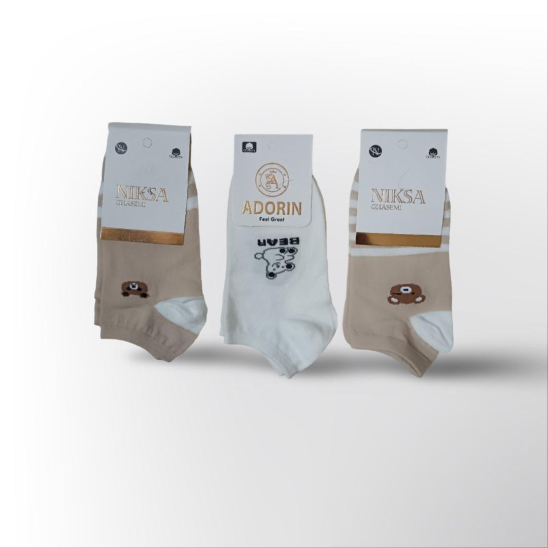 جوراب مچی زنانه طرح تدی رنگی بسته 3 عددی کد 3