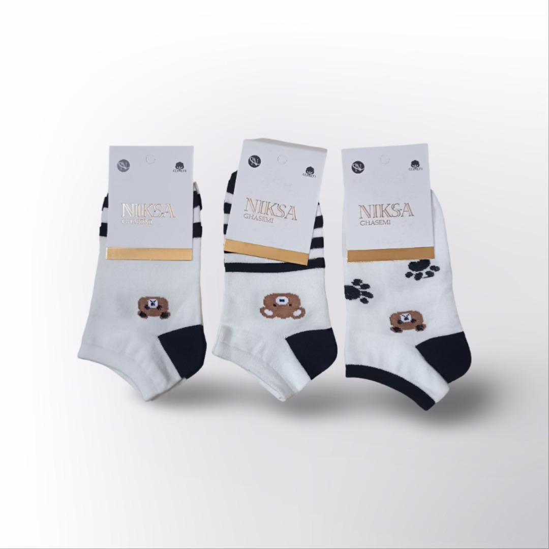 جوراب مچی زنانه طرح تدی مشکی بسته 3 عددی