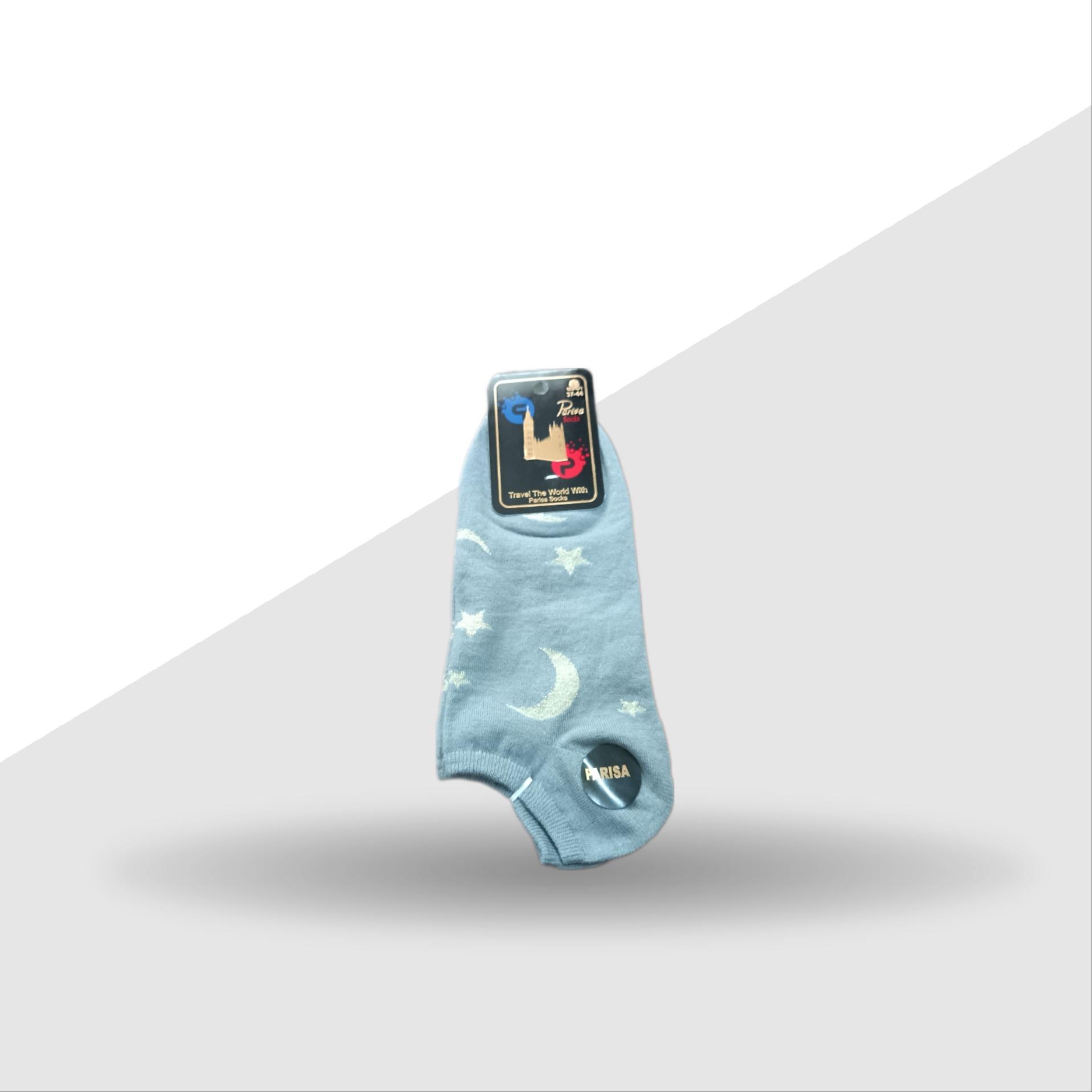 جوراب مچی زنانه نخی طرح ماه و ستاره رنگ طوسی