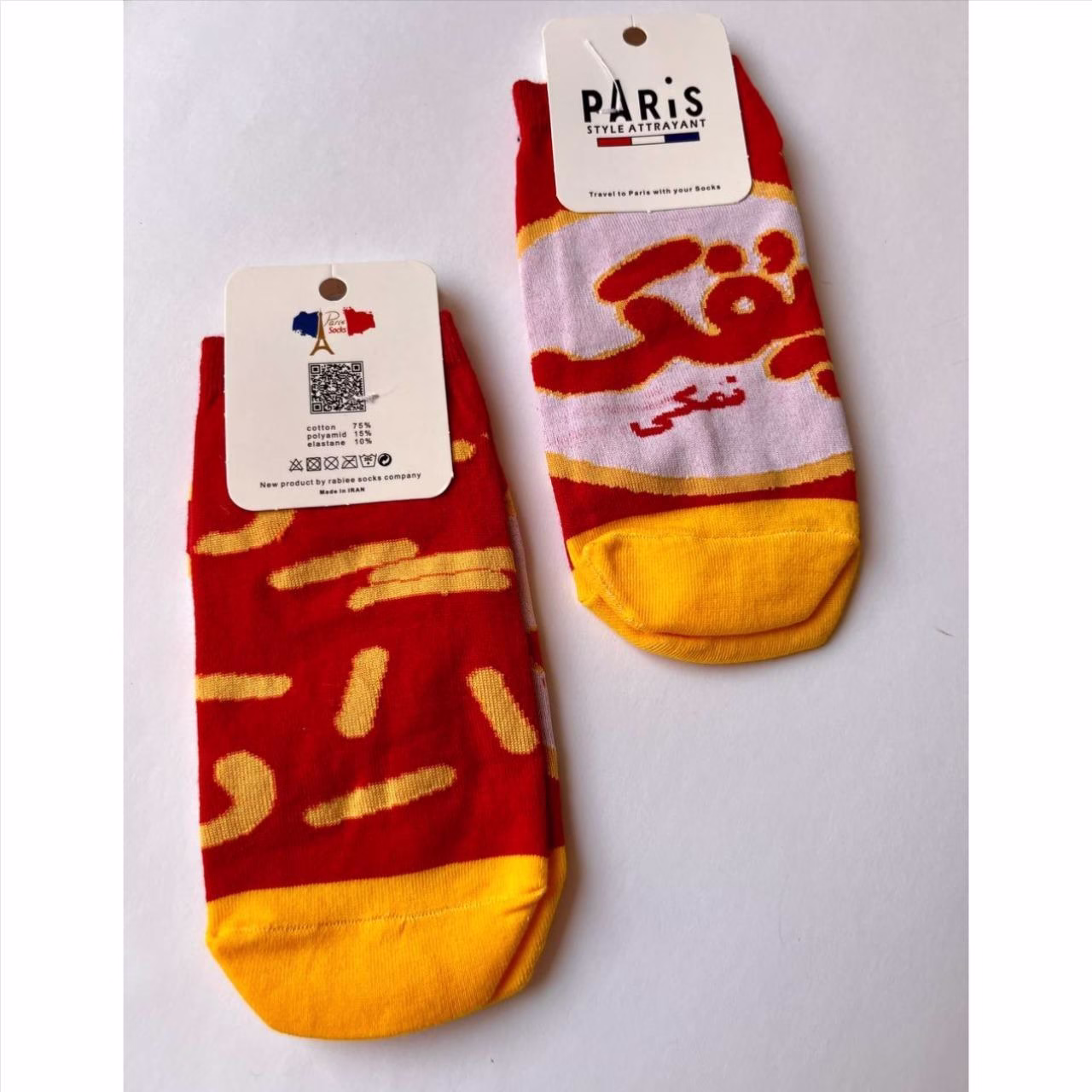 جوراب مچی فانتزی تا به تا طرح پفک نمکی - تصویر