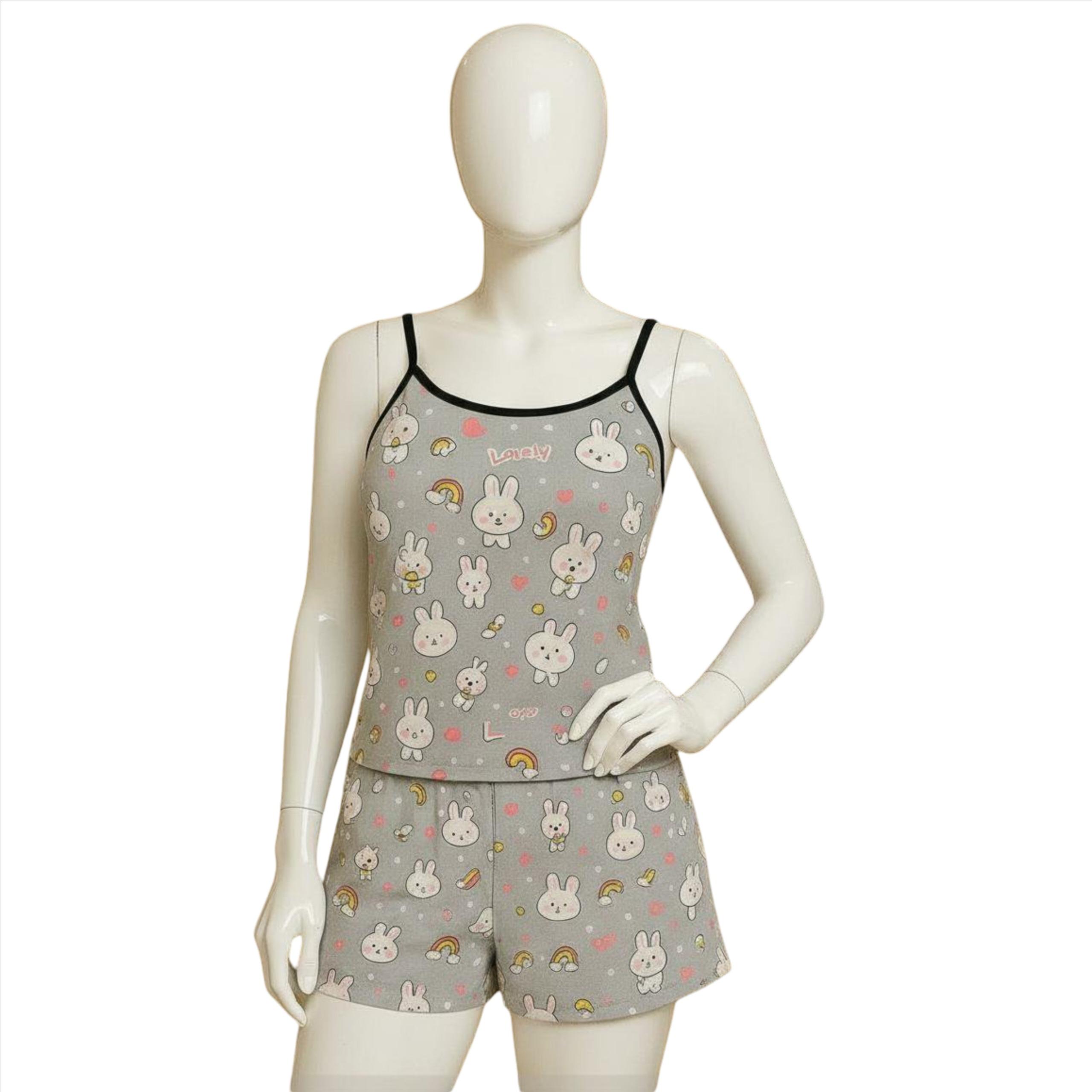 ست تاپ و شورتک زنانه دخترانه طرحدار پارچه وارداتی کد 2046