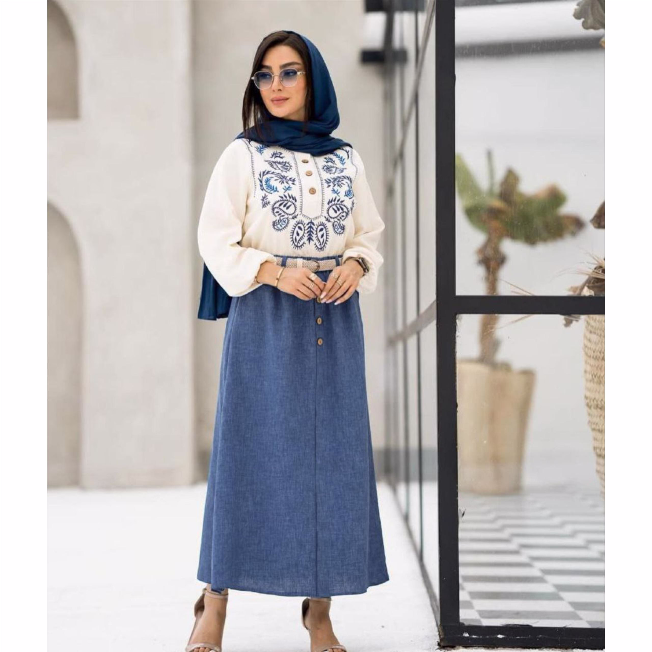 ست شومیز دامن اسپرت مجلسی زنانه شیک کد 40417 رنگ آبی(ست ۳ تیکه با کمربند) - تصویر