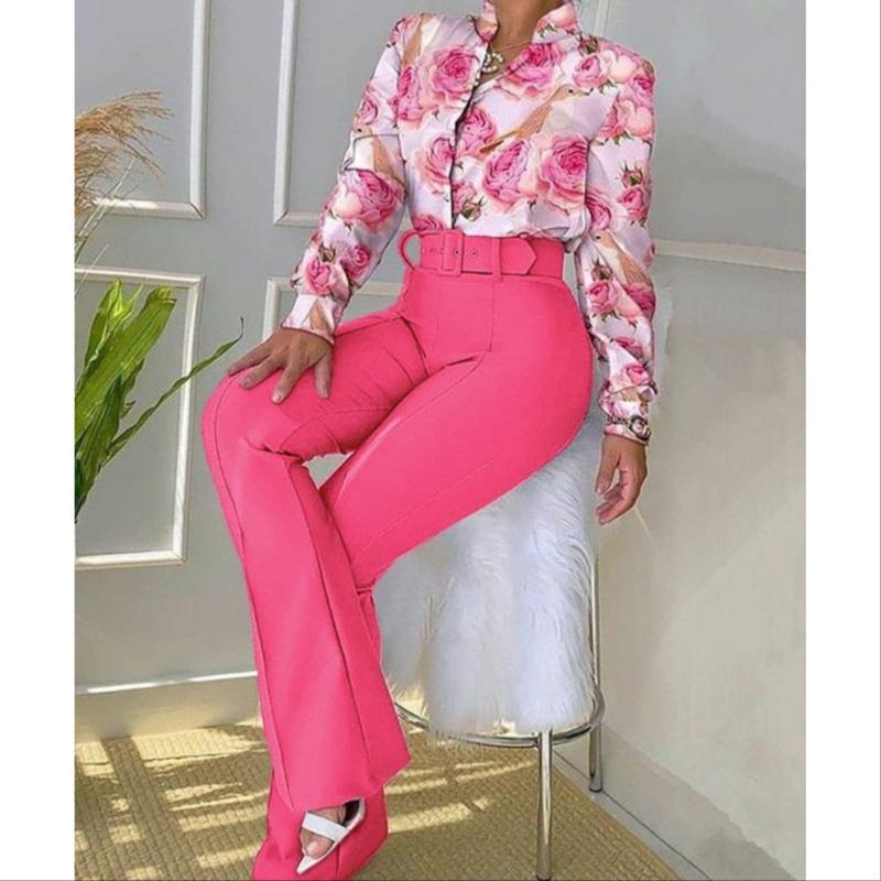 ست شومیز شلوار مجلسی زنانه طرح اروپایی کد 40245 در 2 سایز صورتی