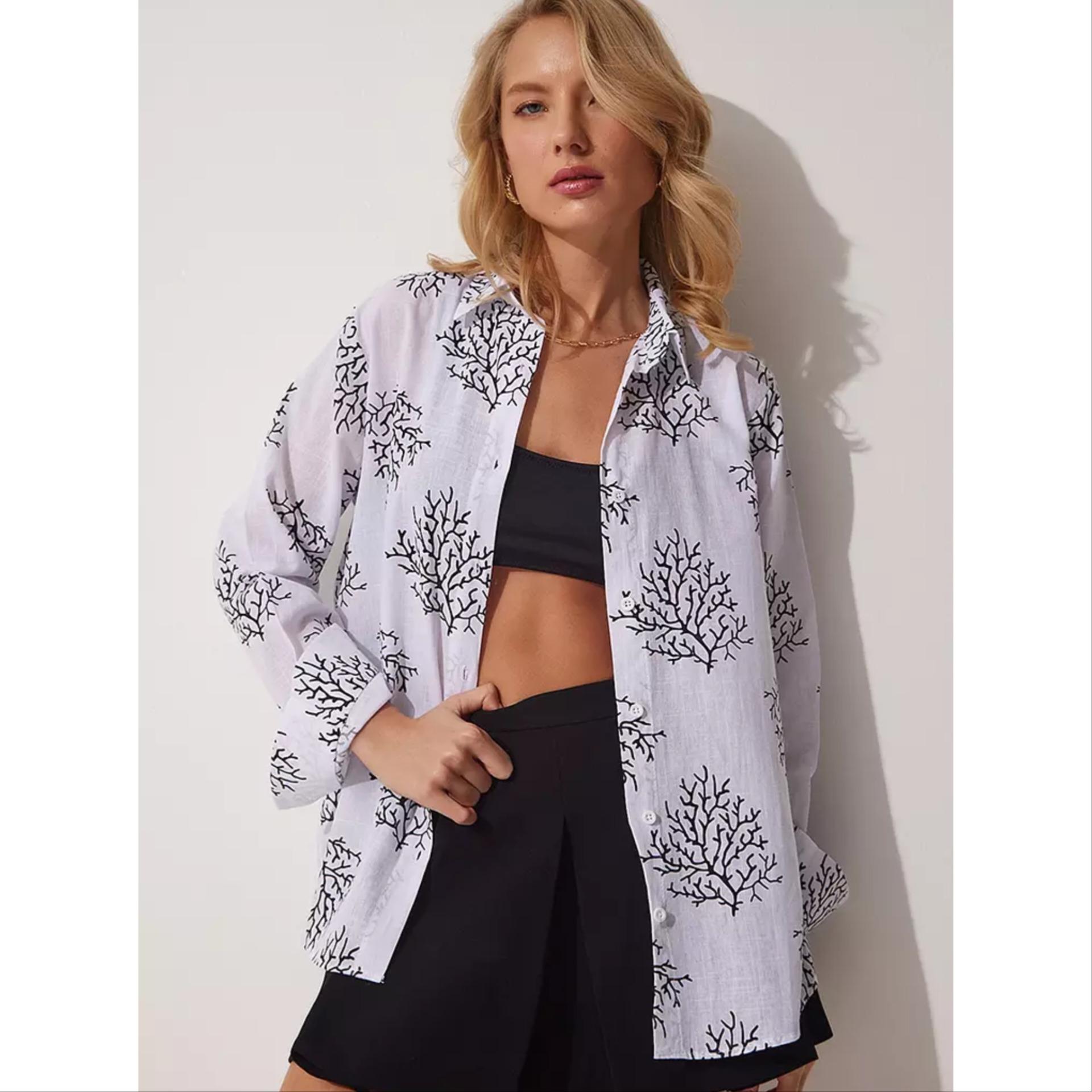• شومیز نخی ترک طرحدار زنانه برند هپینس استانبول Happiness Istanbul