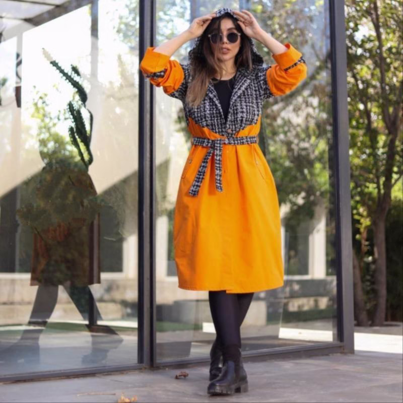 مانتو بارانی کتان زارا کلاهدار اسپرت بدون آبرفت رنگ نارنجی