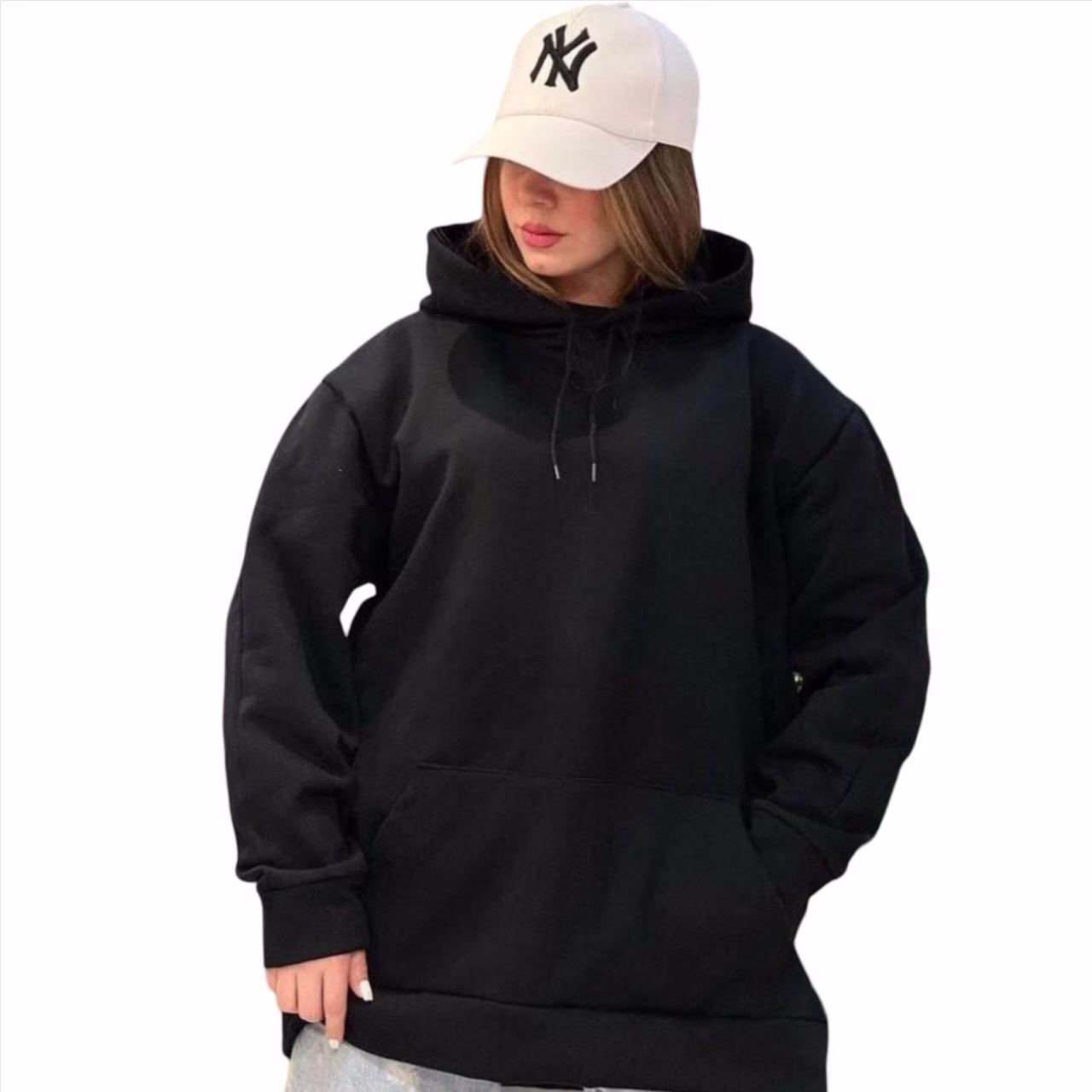 هودی کلاهدار اسپرت زنانه و مردانه فریسایز مشکی - تصویر