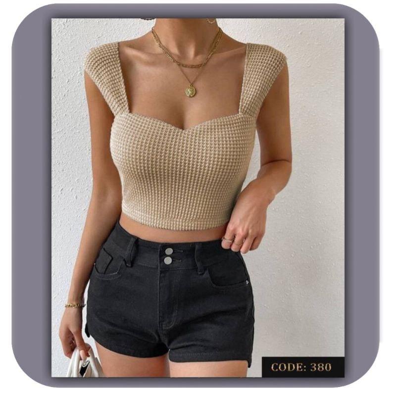 کراپ خرگوشی زنانه مدل بیسکوییتی کد Lovi-380